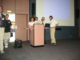 The animation presented during the closing session is available with a resolution of 320 x 440 or 640 x 480 as a .mov format. These files are read by QuickTime, downloadable, for example, here.